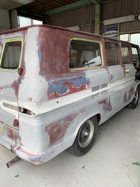 この年代のお車ちゃん達は私たちにタダでは塗装をさせてくれません